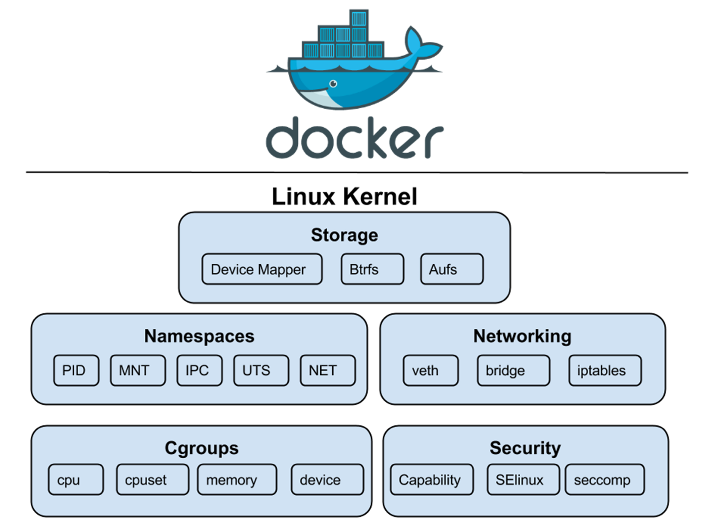 Docker использует следующие модули ядра Linux: