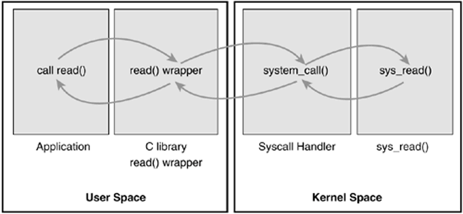 В большинстве операционных систем системные вызовы реализуются как прерывание программного обеспечения. Когда процесс делает системный вызов, активируется обработчик прерывания операционной системы, который выполняет запрошенную операцию и возвращает управление процессу.