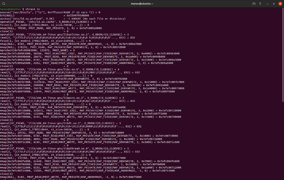 Strace в Linux — это программа, которая может показывать syscall, вызываемые в программе. Ты можешь запустить Strace с именем программы, которую хочешь отследить, чтобы получить список syscall, вызываемых в процессе работы этой программы. Например: strace ls