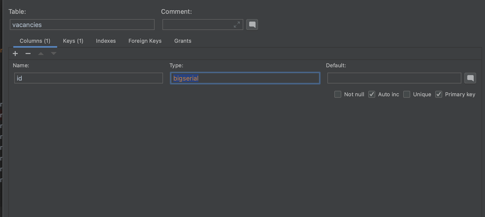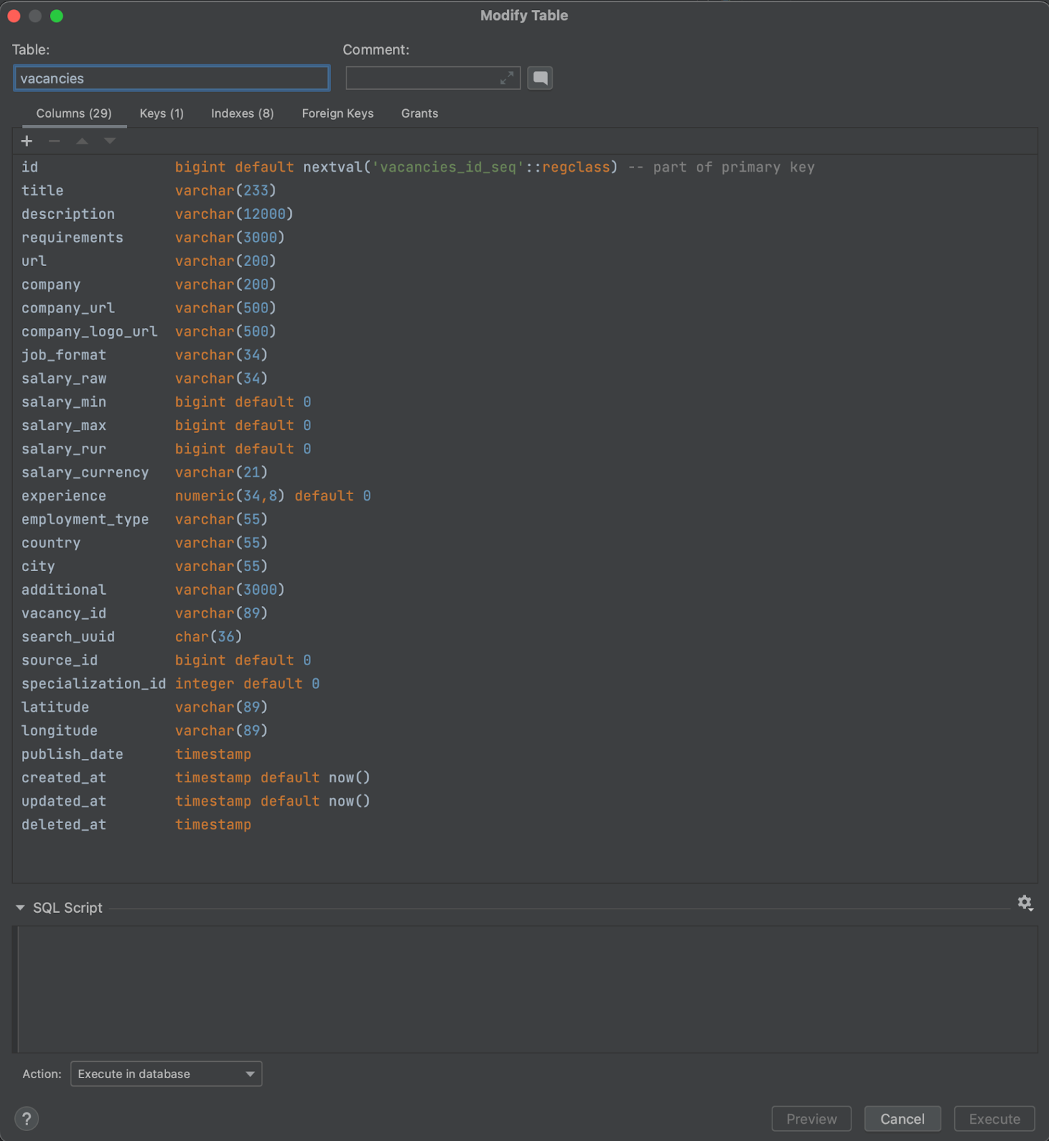 - Продолжим нашу работу и создадим таблицу Vacancies.