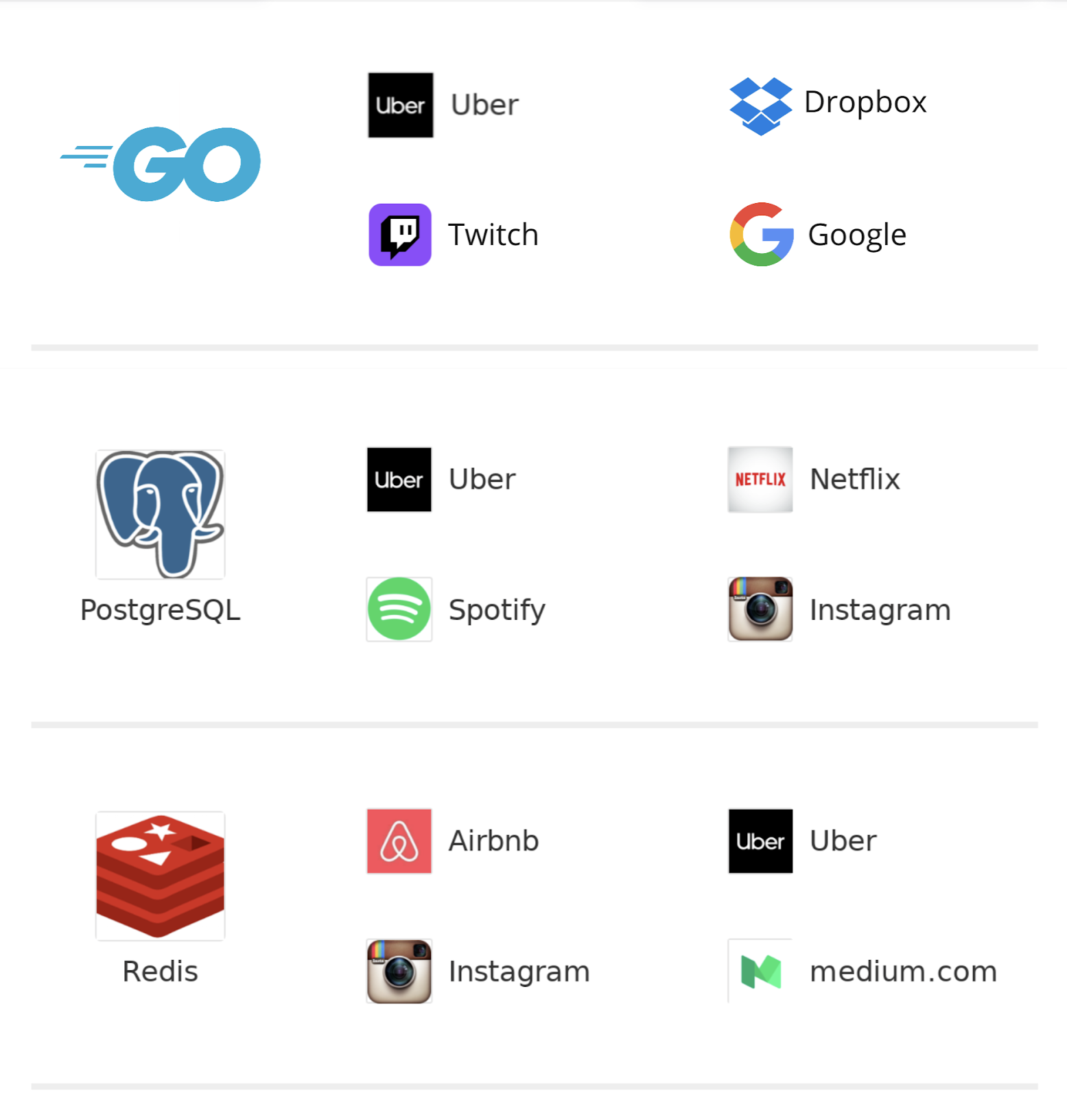 В нашем случае выберем стек, состоящий из языка Go, базы данных PostgreSQL и кеша Redis.