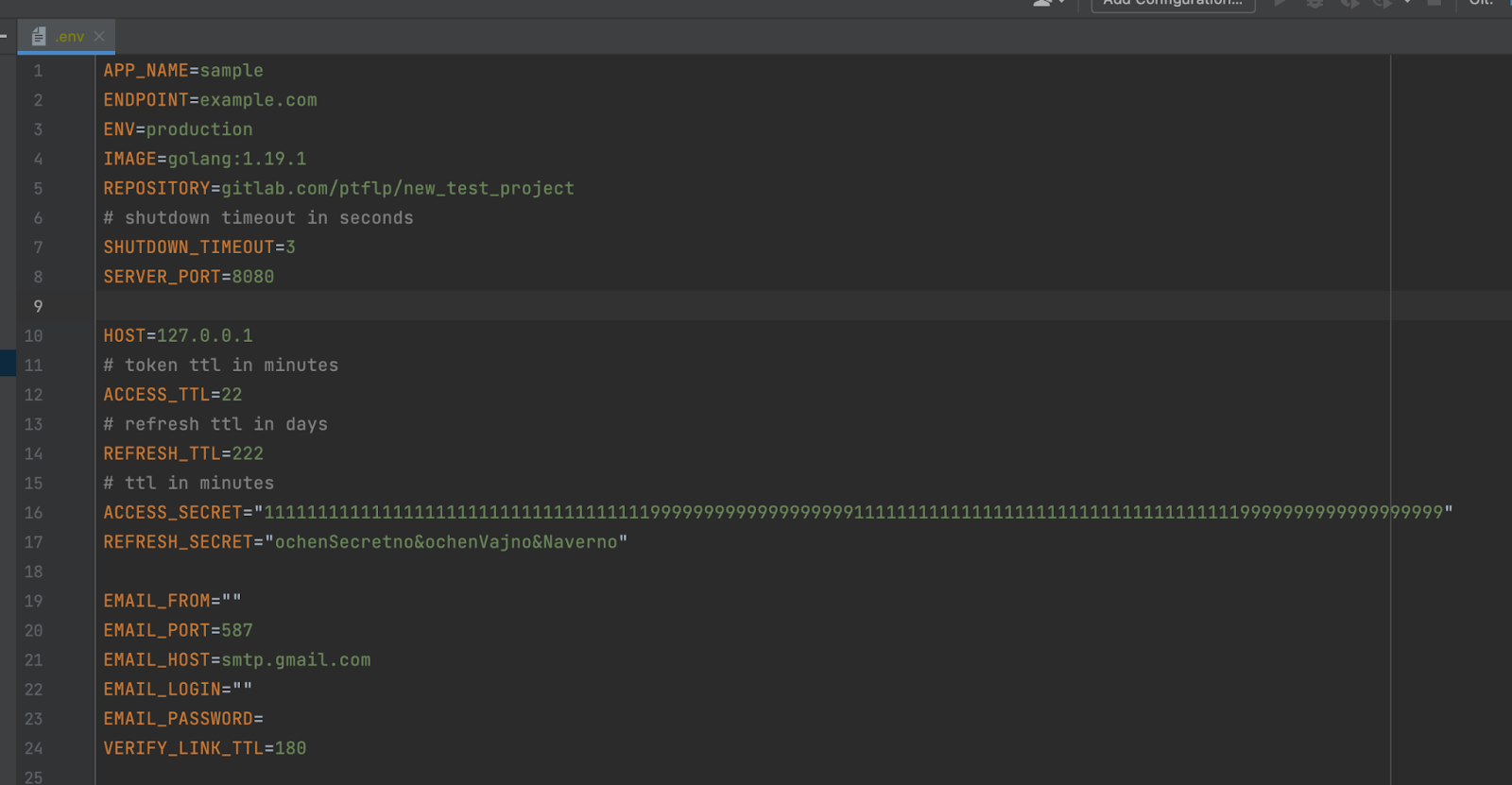 Скопируй файл .env.example в .env и настрой переменные окружения для твоего бойлерплейта. Эти переменные могут включать такие вещи, как адрес базы данных, пароли, порты и т. д.