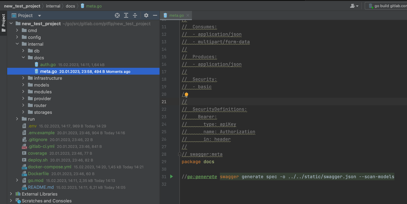 - Сгенерируй swagger.json в файле internal/docs/meta.go.
